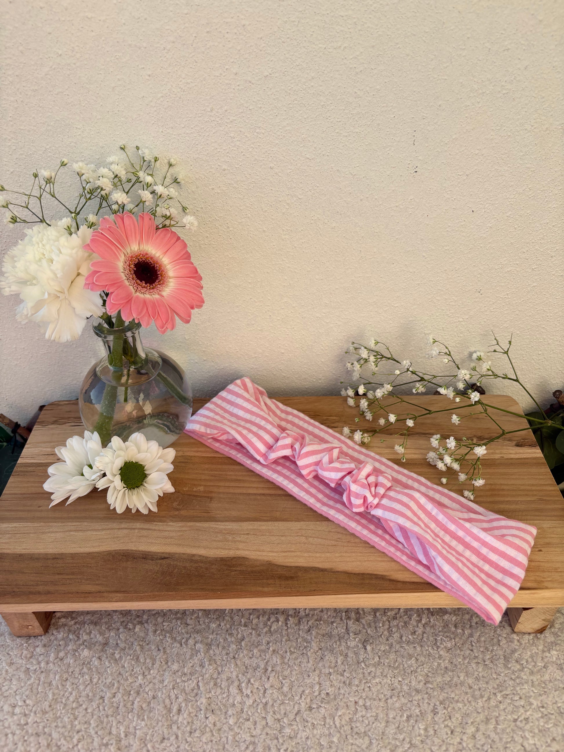 Bandeau cheveux modèle VICTORIA - Rayures roses et blanches, fait main.