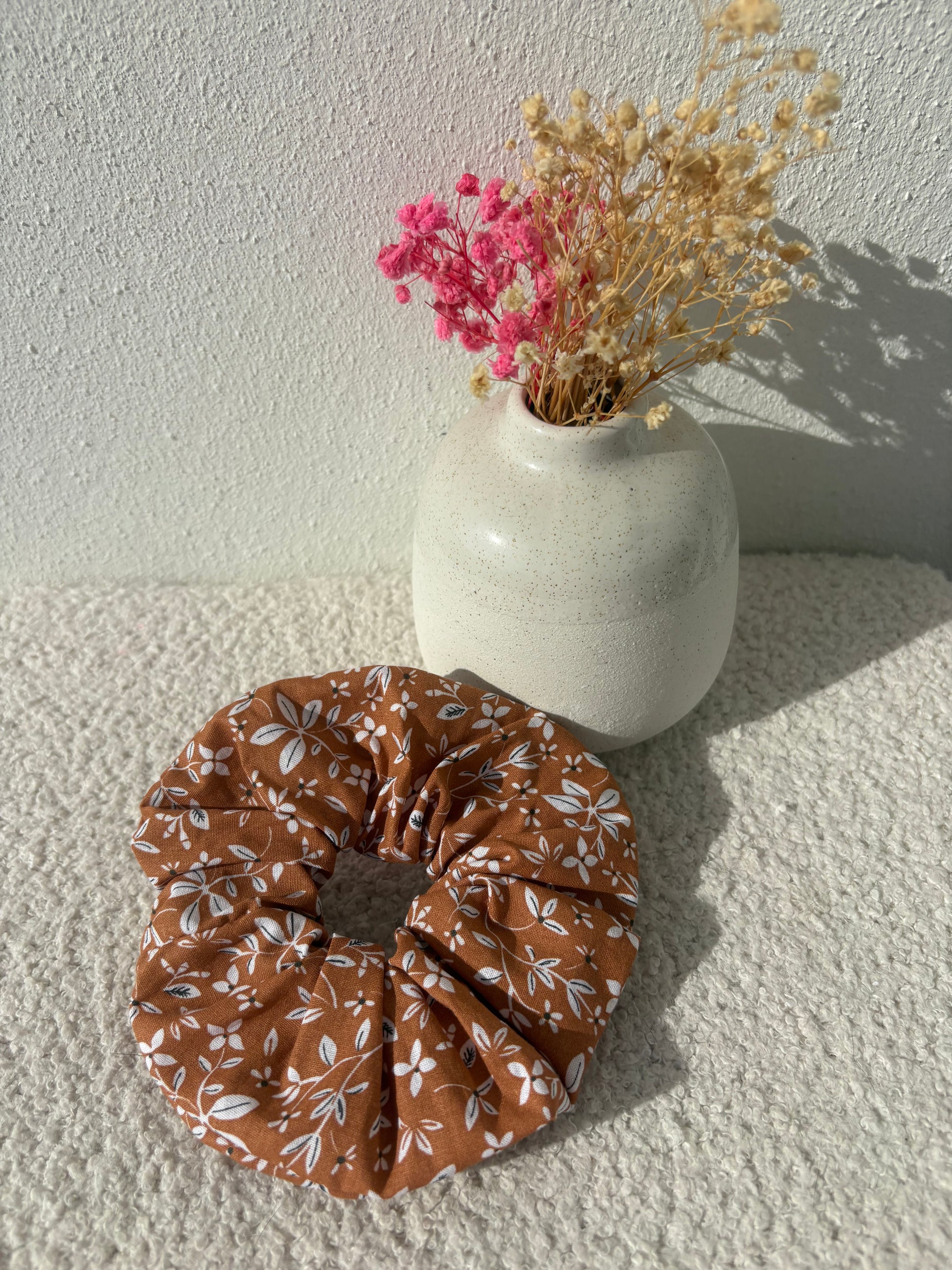 Apportez une touche bohème et naturelle à vos coiffures avec ce joli chouchou marron décoré de petites fleurs blanches. Confortable et doux, il maintient vos cheveux sans les abîmer, tout en ajoutant une note chic et décontractée à votre look.