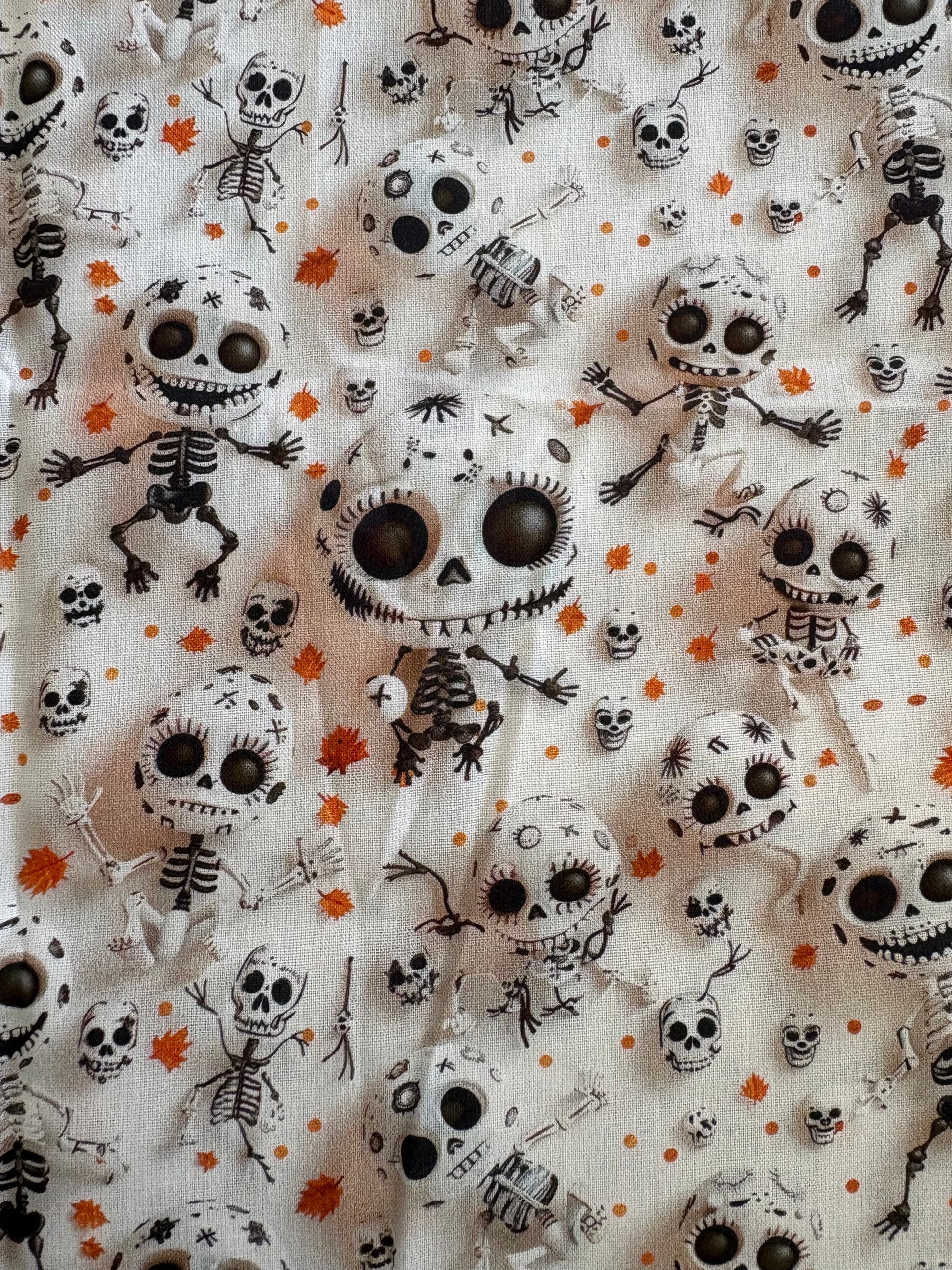 Plonge dans l’esprit d’Halloween avec ce chouchou plein de peps ! Son tissu orné de petits squelettes souriants, apporte une touche festive et joyeuse à ta coiffure.