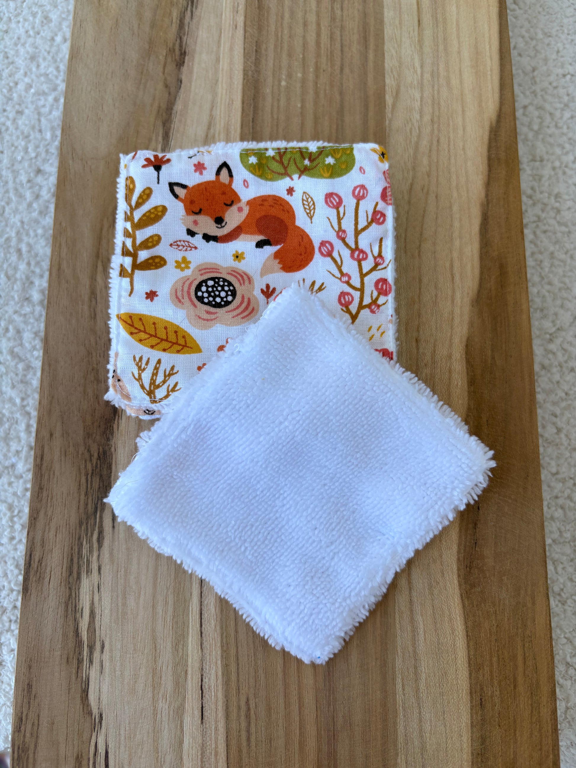 ✔ Confort – une face en coton imprimé renard et une face en tissu éponge bambou ultra-doux